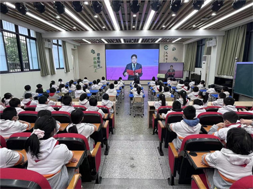 乔祺号召孩子们用行动回应这份守护,争做“学法小先锋”“普法小喇叭”和“守法小标兵”,从佩戴好红领巾、遵守交规等小事做起,共同点亮法治中国的星光。