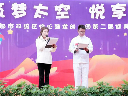 在主持人激情洋溢的开场介绍下,在家长和孩子们的期待与欢呼声中,成都市双流区怡心骑龙幼儿园第二届健美运动游戏节正式拉开帷幕!
