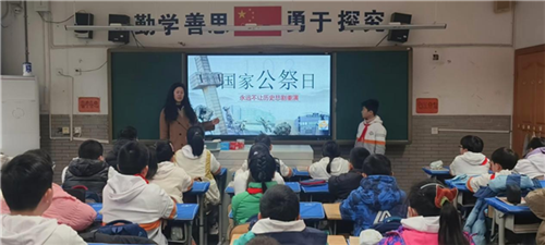主题班会环节,各班教室里氛围庄重而热烈。班主任们通过详实的史料、珍贵的影像,带领学生们重温南京大屠杀前后的悲壮历史:沦陷的城池、受难的同胞、不屈的抗争……一个个触目惊心的片段,一段段血泪交织的往事,深深触动了每一位学生的心灵。同学们端坐静听,眼神中满是对历史的敬畏、对先烈的敬仰,更燃起了对和平的珍视与对祖国强盛的渴望。大家纷纷表示,要将这份震撼与感动转化为学习的动力,坚定为实现中华民族伟大复兴而不懈奋斗的目标,让和平的种子在心中深深扎根、茁壮成长。
