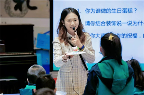 都江堰市北街小学三年级美术教师王昱认为本节课设计巧妙:以“为家人制蛋糕”为核心,融入“情景+情境”新课标理念——“情景”(有情有景)拉近距离,“情境”(问题导向)让师生入角色;还结合网链共享,把三年级学生创意实践和网络资源结合。