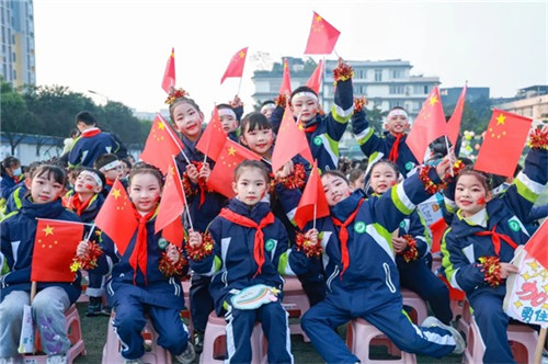 国旗方队步伐整齐,神情庄重,展现出竹娃们昂扬的精神风貌。