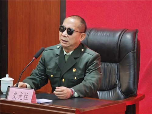 报告会在庄严肃穆的气氛中拉开帷幕。史光柱戎装笔挺,声如洪钟,仿佛一棵扎根岁月的青松。一九八四,老山焦土,他在炮火中身受重伤、永别光明,却以意志为眼,继续为祖国挺立脊梁。四十载春秋走过,他将这“站立”带进校园——“当年我们是用身体站起来守卫国土,今天,希望你们用知识、用创新,让中国在世界舞台上永远站立。”一语如炬,贯通烽火年代与和平岁月,点燃青春的星火。他以庄重深沉的叙述,向在场师生回溯了铭刻于历史的战斗历程,生动再现了革命先辈的英雄壮举。