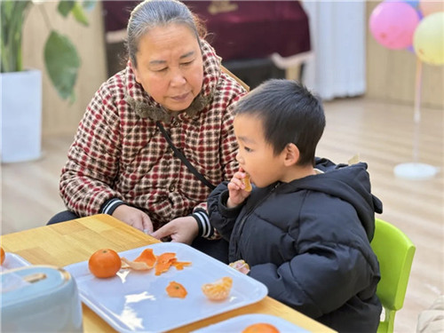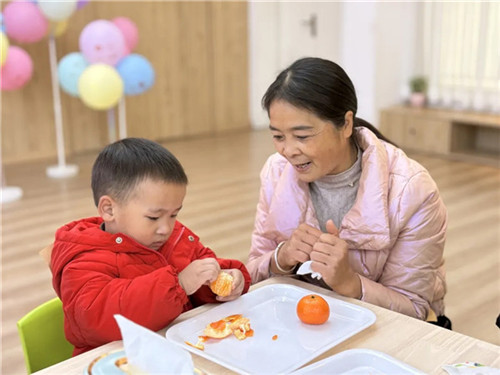 互动结束后,幼儿园精心准备了香甜可口的水果。家长和小朋友们围坐在一起细细品尝。