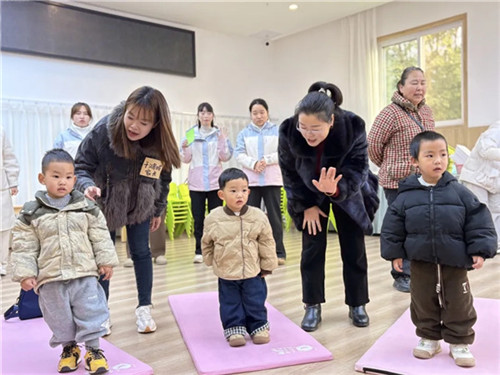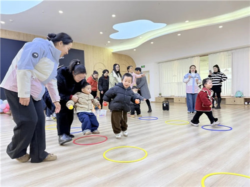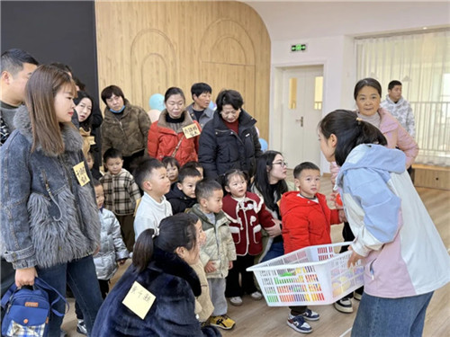小朋友们在家长的陪同下来到了多功能室,一起观看哥哥姐姐参加的游戏活动。随后在老师的带领下开启了体验之旅。