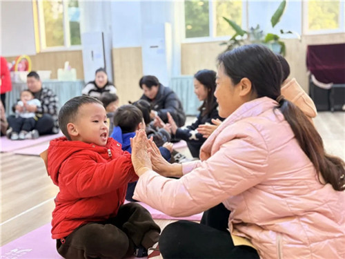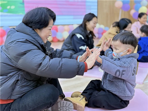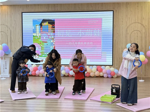 随着《你好你好》的音乐响起,在家长的陪同下,老师和小朋友们打招呼互动,互相认识介绍自己,欢快的节奏瞬间点燃了现场的气氛。