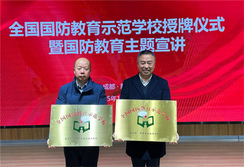 12月5日,新都区新时代文明实践中心“新·声”讲堂内,新川外国语学校校长张峰站上了领奖台,他从新都区人武部领导手中接过了那块闪闪发光的牌匾——“全国国防教育示范学校”。这是教育部、中央军委政治工作部从2017年起举办的一项国防教育评选活动,旨在表彰那些在“落实立德树人根本任务,增强学生国防观念,为国防建设培养后备人才”等取得显著成效的学校。