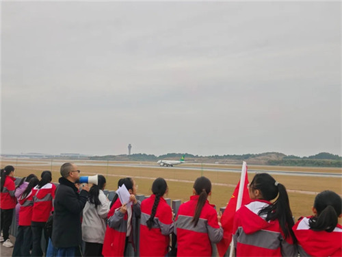 转场空港观景点,开启科技探索篇章。老师们系统讲解飞机起降原理、机场运行流程及天府国际机场的枢纽地位,耐心解答同学们提前准备的疑问,大家认真记录知识点,高效完成“航空小百科”任务卡。活动尾声,学生们纷纷表示:“这场研学让课本里的知识跃然眼前,既收获了探索的快乐,更领略到了历史文化的魅力!”