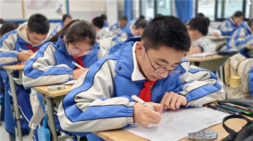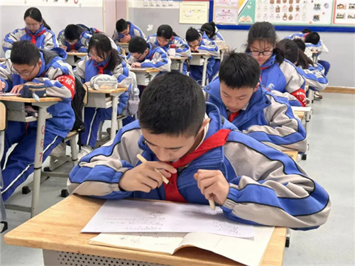 铃声响起,课堂瞬间切换为专注模式。同学们端坐课桌前,执笔凝神,目光紧锁试卷上的一道道方程难题。从基础题型的精准演算,到复杂情境的逻辑拆解,再到巧思妙解的灵活运用,大家奋笔疾书,在数字与符号的世界里展开激烈角逐,教室里笔尖划过纸张的沙沙声响,尽显少年学子的专注与执着。
