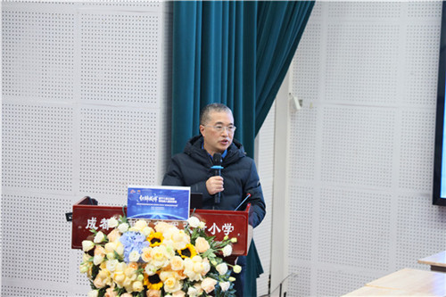 暖场之后,成都高新区教育发展中心教育发展部部长刘建军首先为活动致辞,他指出,本次活动主题高度契合高新区深化课程教学改革、推动教育高质量发展的核心方向。近年来,高新区持续推动学校课程体系构建与教学方式转型,着力打造素养导向、综合育人、学为中心的区域课改新样态。成都高新区锦晖天府小学作为高新区品质课程实验校,开展了积极有益的探索,本次活动既是其阶段成果的集中展示,也为全区学校提供了交流互鉴的平台。他希望各校以活动为契机,加强课程整体规划,推动教学方式深刻变革,共同谱写区域教育新篇章。