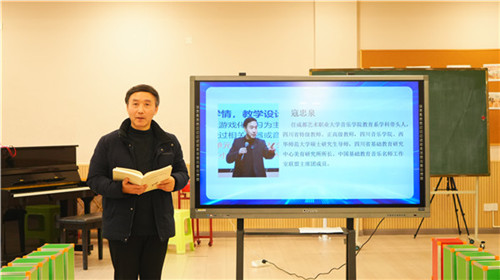 音乐会场旋律流淌,锦晖天府小学音乐备课组长罗寓文老师的专题汇报娓娓道来。锦晖天府小学的罗竟慧兰老师《过新年》与来自北京中关村一小的宋琨老师的《我爱雪莲花》的课例展示,处处浸润着美与情感,四川省特级教师,基础教育研究中心美育研究所所长寇忠泉老师、成都市万里燕名师工作室领衔人万里燕老师、四川音乐学院继续教育学院副院长皮欢的点拨让艺术育人的价值深入人心。