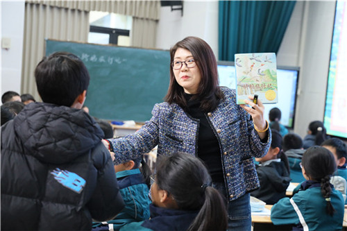 语文会场在张程锦老师的《润养童真 织锦成晖——锦晖小学“真·锦”语文国家课程校本化实施的探索》汇报中拉开序幕,她系统阐释了学校语文课程从理念架构到实践落地的完整逻辑,呈现了一幅以素养为导向、以学生为主体的课程蓝图。