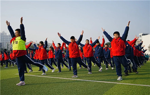 在校园集体跑开跑前,新都四中青年思政教师郭菀昕作动员讲话。她带领同学们重温了“一二·九”运动历史,并强调纪念“一二·九”运动是为了传承其精神内核。郭菀昕号召全体同学行动起来,用奔跑的姿态致敬历史、奔向未来,为集体跑注入了深刻的思想内涵和精神动力。