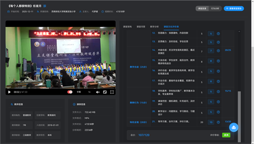 英语课堂上,锦汇东城小学粟波老师精心设计了“四季衣橱整理”等情境任务,让学生在角色扮演中自然运用英语。在课后说课环节,粟老师进一步阐释了本课“在真实语境中培养交际能力”的设计理念,分享了如何通过任务驱动激发学生表达欲望的教学策略。智慧系统记录显示,学生语言输出量明显提升,互动参与度极高,真正实现了在情境中提升语言应用能力。