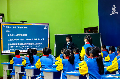 锦汇东城小学何雨涵老师在《聊聊大与小》的课堂中,则通过智慧教育系统组织了“大小辩论赛”,引导学生从文本中寻找证据支撑观点。系统实时记录并直观呈现学生思维的转变过程,使抽象的辩证思维变得生动可感。