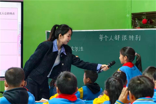在语文教学展示环节,锦汇东城小学任星月老师执教的《每个人都很特别》一课,巧妙运用智慧教育系统的互动功能,通过语音便利贴实时展示学生的思考。课堂中,孩子们积极为变色龙寻找独特优点,在轻松愉快的氛围中深刻领悟了“每个人都是独一无二的。”