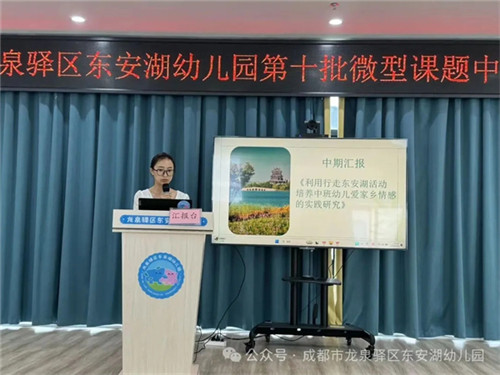 为扎实推进幼儿园第十批区级微型课题研究,及时梳理阶段成果、破解研究难题,成都市龙泉驿区东安湖幼儿园教育集团于9月25日组织开展了区级微型课题中期汇报活动。