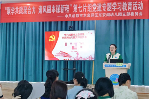 为加强教师队伍的思想政治建设,中共成都市龙泉驿区东安湖幼儿园支部委员会于2025年5月12日组织开展了以“联学共践聚合力 肃风固本谋新程”为主题的党建专题学习教育活动。