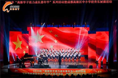 更欣喜的是,学校的节目被推荐参加了成都高新区中小学音乐展演,并作为整场展演的压轴之作。节目演出结束后,孩子们动人的歌声仍持续萦绕剧场,成为传递家国情怀、彰显美育成效的精彩注脚。