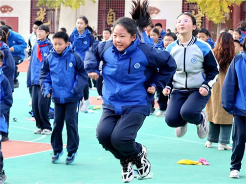 操场边的宣传栏上,“每个孩子享有成长的快乐”“活力释放 运动青春”的标语,被阳光晒得格外鲜亮。每天两小时体锻不是写在课表上的文字,而是绳影里的笑、跑道上的汗——是让每个孩子在跳跃、奔跑、欢笑里,摸到青春最生动的模样。