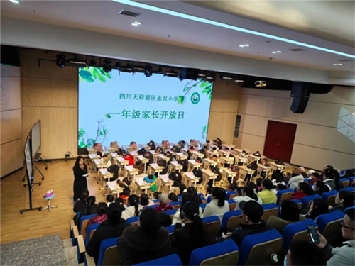 张颖老师给家长们带来了以“新芽初绽,未来可期:一年级成长初记录”为主题的汇报。张颖分享了孩子们进入一年级以来的成长与蜕变,也为家长们介绍了在小学学习生活中永兴小学有丰富的特色课程及活动;分享最后,张颖也提到家校共育的重要性,和家长们分享了共育心得。