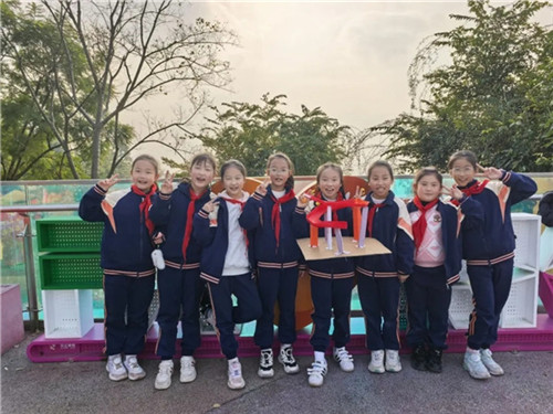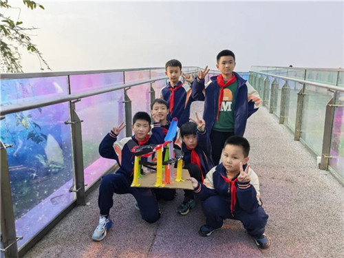在科技手工制作环节,学生以小组为单位发挥创意,运用所学知识完成作品并展示讲解,最终活动评选出“最佳创意奖”“最稳固模型奖”。