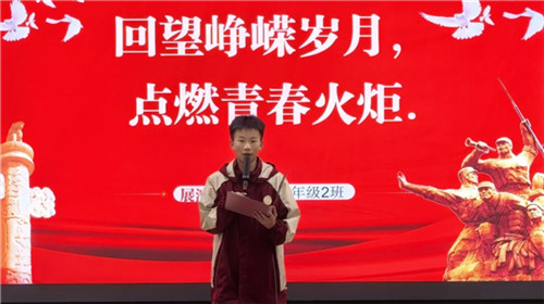 比赛中,同学们精神饱满、仪态端庄,围绕一二·九运动等红色历史,带来《青春燃烽火 热血护中华》《接过历史的火炬》等精彩朗诵。激昂的语调、真挚的情感、坚定的眼神,生动再现了先辈们的爱国壮举,诠释了新时代少年的责任担当,赢得现场阵阵掌声。