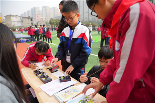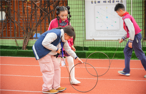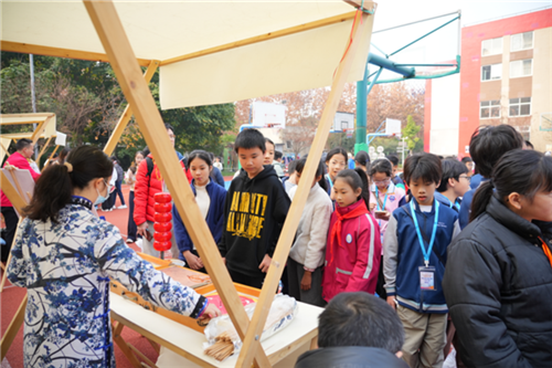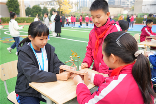 室内活动落幕之后,丰富多彩的操场室外特色活动与学科体验同步开展。学校还为到访师生精心打造了非遗中心组项目体验区,糖画、面人、棕编、绳编等传统技艺体验项目依次排开。各学科组也结合自身特色,推出了形式多样的学科体验活动,将学科知识与趣味互动相融合,为来访师生带来了丰富多元的体验。两校的孩子们通过丰富多彩的体验活动,将学科知识与趣味互动结合,在协作与游戏中加深了解、增进友谊。