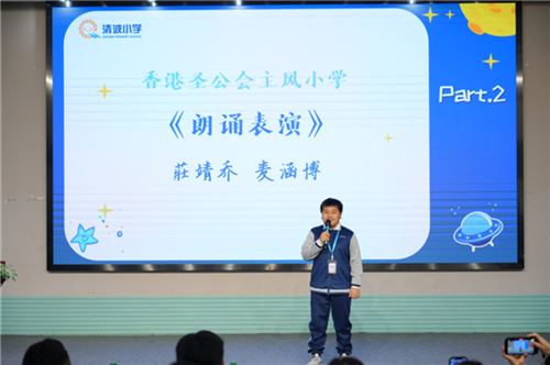 香港圣公会主风小学副校长黄世华上台发言,他向学子们阐释了走出校园、了解多元文化的意义,鼓励孩子们大胆尝试学习普通话及各类语言,以开放的心态探索广阔世界。黄世华对两校文化与教育交流寄予美好期许,希望孩子们在交流中拓宽视野,在跨地域互动中收获成长。