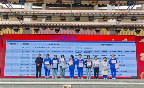 表彰会上,课题组对获奖团队进行了表彰,共评选出最佳奖4项、一等奖4项、二等奖9项、三等奖18项、优秀奖9项。获奖作品内容丰富多元,尽显青春视角下的时代观察:高二1班团队创作的作品,通过访谈还原了特殊岗位上的忠诚坚守,斩获一等奖;《行医济世,青春无悔:乡村医生曾群英的基层坚守之路》《仁心护邻里,乡村赤脚医生的坚守》等作品,聚焦基层医疗工作者的奉献,传递出民生温度;《一碗羊肉汤里的简阳魂:汪老五的百年滋味与匠心传承》则记录了传统手艺的坚守与传承,彰显文化自信;还有对西藏修路老兵、脱贫攻坚一线社区书记、退伍军人等群体的访谈作品,从不同维度展现了平凡人物在时代浪潮中的责任与担当。