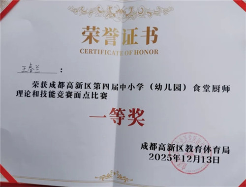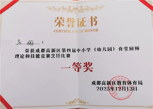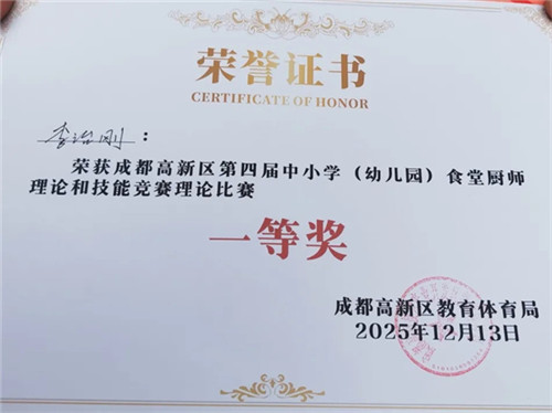 佳绩,是过去的里程碑,更是未来的新起点。电子科技大学实验中学食堂团队将以此次荣耀为鞭策,继续秉承匠心、坚守初心,把对师生的关爱融入一粥一饭,用更安全的食材、更营养的搭配、更用心的服务,为孩子们的茁壮成长提供最坚实的“食”力保障!(黄小林 静月 杨卫 流萤)