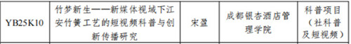 近日,宜宾市社会科学界联合会发布通知,成都银杏酒店管理学院在2025年度宜宾市社科研究基金项目申报中取得优异成绩,共有5个项目成功获批立项。尤为亮眼的是,本次该校申报的3项科普专题项目全部获批,立项率高达100%。