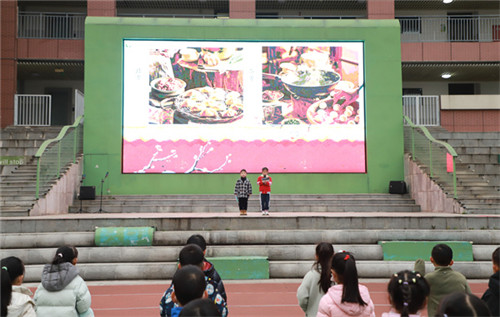 在主题宣讲环节,两位主持人化身为“传统文化小使者”,向全校师生生动介绍了冬至节气。