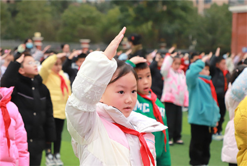 为弘扬中华优秀传统文化,让学生在节气更迭中感受自然韵律与生活之美,2025年12月15日,成都市玉林小学果堰分校举行了“数九迎冬至,奋发正当时”传统文化主题教育活动。本次升旗仪式由一(1)班杜百伦、王翊菲同学主持。