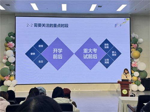 学校心理健康专职教师雷舒瑄围绕静态筛查与动态评估两大核心,详解筛查分类、访谈转介、四方会谈等流程,明确危机信号识别、重点时段关注、沟通语言规范以及家校协同的重要性。强调“生命第一、保持关注、及时上报、分工合作”的原则,确保心理危机干预的时效性与协同性。
