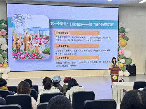 学校分管心理健康教育的副校长黄蕾针对日常育人场景,提出“日常观察、主动沟通、异常干预”三大核心场景的实操方法,指导班主任通过“行为变化、情绪变化、生理变化”三维度捕捉学生心理信号,掌握“先共情后引导”的沟通话术与沉默学生的“替代沟通”技巧。在干预环节,黄蕾为老师们明确了“安抚-疏导-协同”三步法,强调不贴标签、不单打独斗、保护隐私、关注自身情绪四大底线原则,让心理关怀有方法、有尺度、有温度。