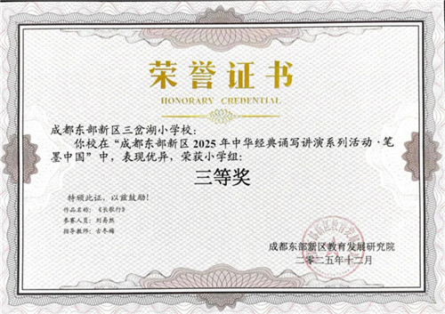 此次获奖是三岔湖小学校重视中华优秀传统文化教育的生动体现,也是师生们深耕经典、勤练不辍的成果。未来,学校将继续以经典为媒,开展更多丰富多彩的文化传承活动,让中华经典在校园落地生根、开花结果,助力学子在经典浸润中成长成才!(黄小林)