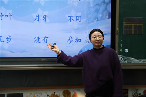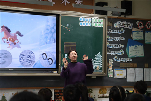 孟雅妮以“语言迁移—跨科渗透—个性表达”为逻辑主线,推动课堂从知识学习走向能力生成。通过仿说练习搭建表达支架,引导学生结合生活体验与想象,完成“小脚丫雪地作画”“自然景物创想”等个性化表达任务;同步自然渗透“冬眠”科学常识,实现语文学科与科学学科的跨界融合,最终在情感朗读中深化人文体验,达成“语言建构、思维发展、跨科认知、情感培育”的多维目标。整个课堂始终贯穿“教—学—评”一体化理念,孟雅妮以精准提问引导思维进阶,以多元化评价激励表达热情,让学生在自主探究中夯实基础、提升能力。