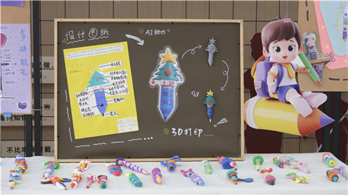 科技元素为本次跨学科学习增添了鲜明的时代感。在《智笔生花》项目中,学生们先手绘设计图,再利用AI生成工具将平面创意转化为生动的3D模型,最后通过3D打印将想法变为实物。这种从设计到数字转化再到实体创造的完整流程,让学生亲身体验了现代设计与制造的技术逻辑。