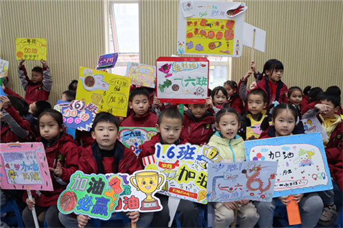 闭幕式上,二年级八班小朋友带来的萌娃篮球秀灵动可爱,四年级五班、四年级八班的啦啦操表演动感十足,各年级师生家长喊出的专属口号响彻全场。