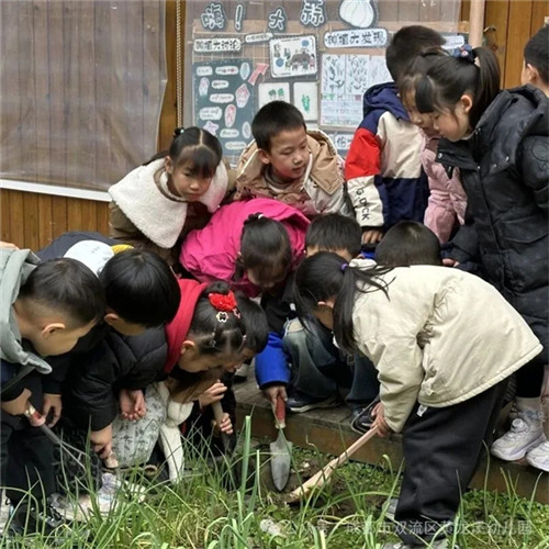 探索完影子的秘密,老师又给孩子们带来了“冬至三候”的小故事。孩子们化身“泥土侦探团”,带上放大镜、小铲子,小心翼翼地走进了种植园,想要一探究竟。