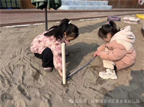 读懂了汉字里的秘密,大班孩子们的“科学脑”启动了。科普视频中说冬至正午的影子是最长的,是真的吗?小小测量员出动!