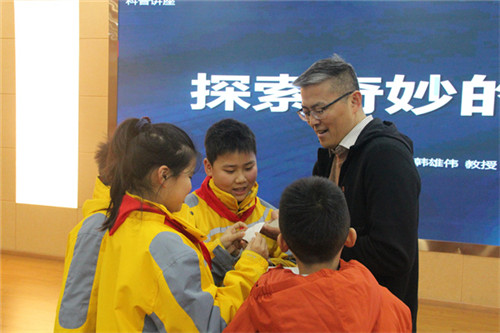 讲座结束后,不少同学主动请韩雄伟签名,并围绕在他身边继续探讨3D打印的细节。那一张张专注的面孔、一双双发亮的眼睛,可以看到一颗颗科学梦想的种子正在悄然萌发。
