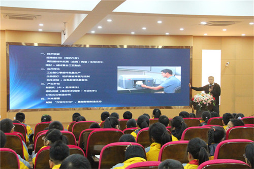 在讲解3D打印的应用时,韩雄伟展示了其在医疗、运动、建筑、航空、文创等领域的真实案例。同学们听得目不转睛,不时发出阵阵惊叹——原来这项看似高科技的工艺,早已融入日常生活的方方面面。