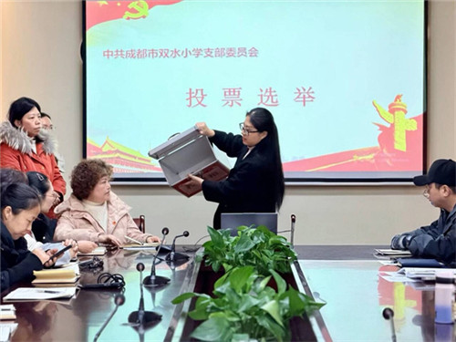 成都市双水小学党支部于2025年12月25日召开了换届选举大会。本次会议由党建办主任冯莉梅同志主持,全体党员教师参会。
