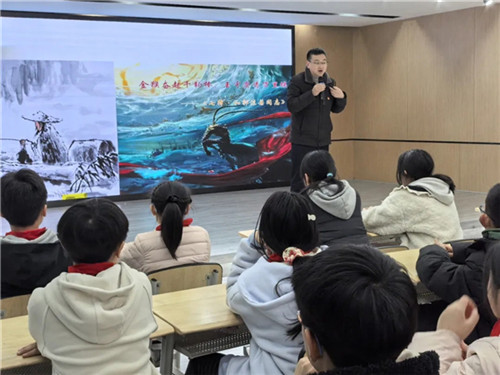 为深化理想信念教育,引导学生传承红色基因,12月26日,青羊区教育局关工委“三进”活动走进成都市鼓楼小学,本次活动特邀成都市树德协进中学罗翔老师为六年级学生带来了一堂生动的理想信念课堂。同学们在罗翔老师的带领下,共同品读了毛泽东同志在不同革命历史时期创作的四首诗词,从中感受中国共产党人的崇高志向与奋斗精神。
