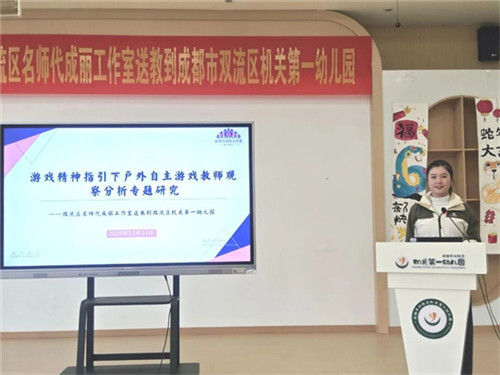 冬日暖阳映童真,专业引领促成长。2025年12月24日上午,成都市双流区名师代成丽工作室“游戏精神指引下户外自主游戏教师观察分析专题研究”送教活动,在双流区机关第一幼儿园顺利开展。工作室全体成员、机关一幼全体教师以及区内40所幼儿园教研骨干齐聚一堂,围绕幼儿户外自主游戏“观察与解读”开展深度研讨、共话专业成长。