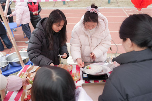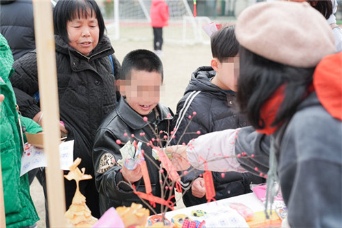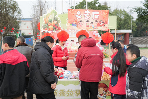活动当天,校园里到处张灯结彩、灯笼高挂,呈现出一派喜气洋洋的景象。义卖区的摊位前人头攒动,玩具、玩偶、手工作品等物品琳琅满目。在家长和老师的协助下,孩子们用稚嫩的声音与老师讨价还价、购买心仪的物品,不仅有效锻炼了学生的社会交往能力,还进行了一次生动的爱心教育。