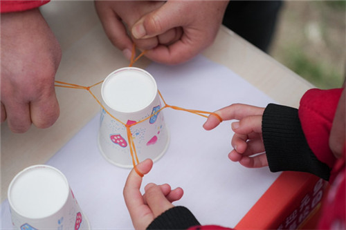 游戏区是活动的“欢乐主场”,10个特色游戏同步展开,处处洋溢着孩子们的笑声与欢声。在“欢乐套圈”摊位前,孩子们全神贯注地瞄准目标,轻轻抛出手中的圈;在“团体运球”场地里,大家在奔跑与协作中感受运动的快乐;“纸杯夹夹乐”则考验孩子们的耐心与协调性,他们小心翼翼地用夹子夹起纸杯,赢得周围阵阵欢呼。每个游戏摊位都由教师和家长志愿者组织引导,他们详细讲解规则,记录成绩,并为完成挑战的孩子盖上印章。