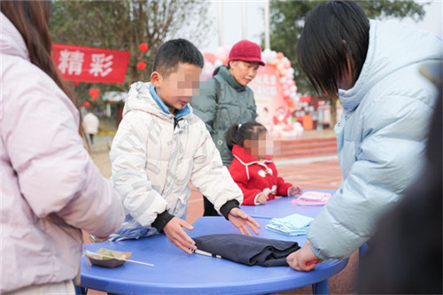 兑奖处同样热闹非凡,零食、礼品、新年福字、糖葫芦、棉花糖等一应俱全。孩子们排着整齐的队伍,用集满印章的游园卡兑换心仪的奖品,每一份奖品都承载着老师们的祝福与关爱。孩子们接过奖品的那一刻,眼中闪烁着幸福的光芒。
