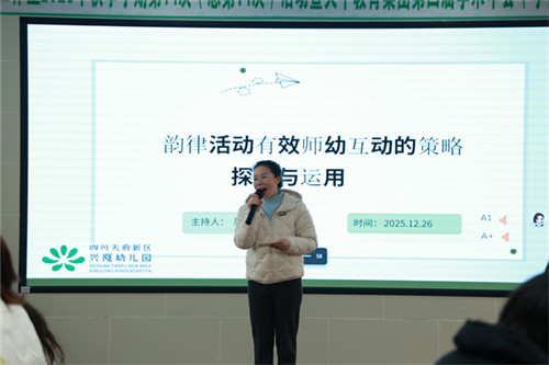 2025年12月26日,以《韵律活动有效师幼互动的策略探究与运用》为主题的成都市叶美蓉名园长工作室2025年秋季学期第14次活动暨天中教育集团第四届学术年会(学前联盟)分会活动在四川天府新区兴隆幼儿园举行,工作室成员、集团姊妹园、帮扶园共计60余人参与。